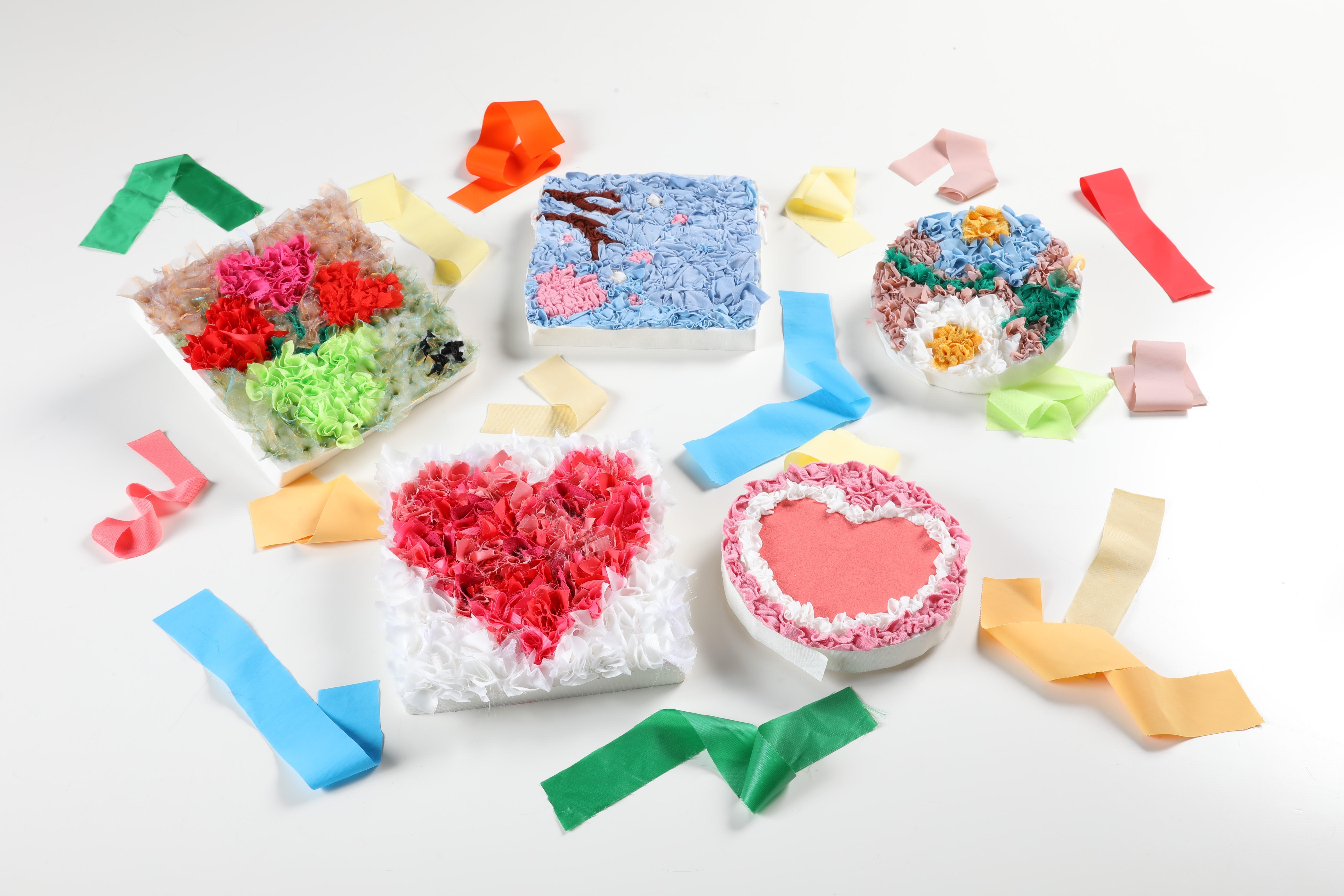 ・端材を用いたカラフルなボールを詰め込んで、世界で一つだけのオリジナルクッションが作れます。